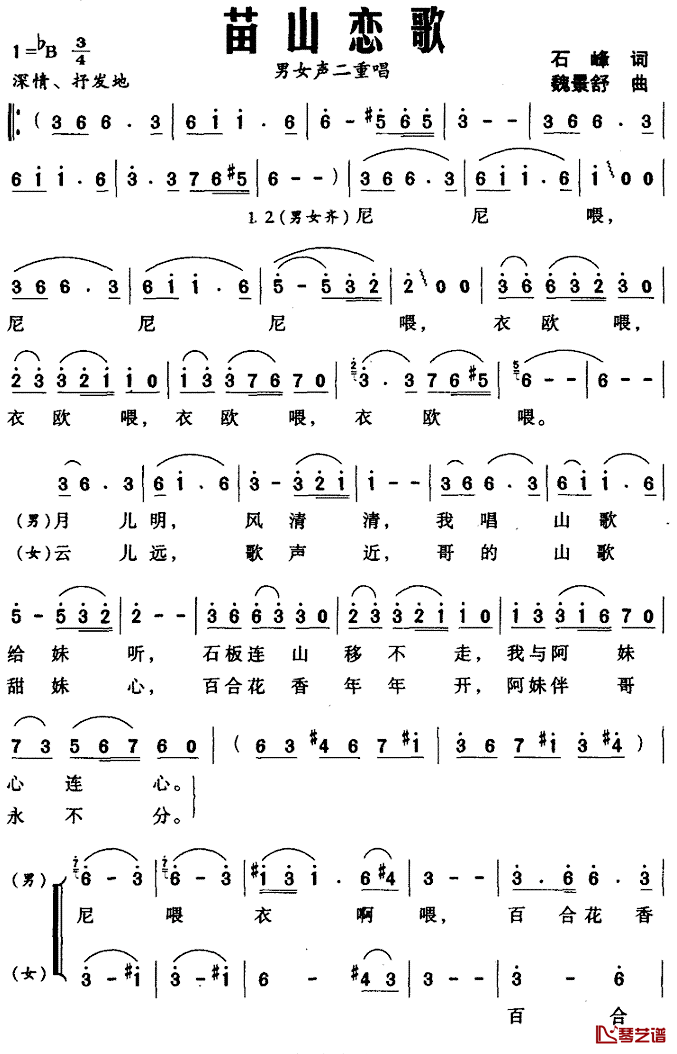 苗山恋歌简谱-男女声二重唱