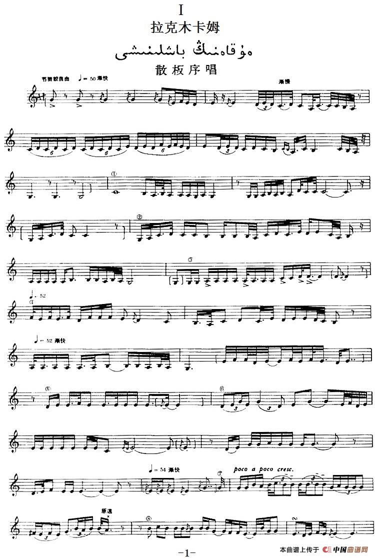 十二木卡姆:Ⅰ 拉克木卡姆 1——10(主旋律谱)