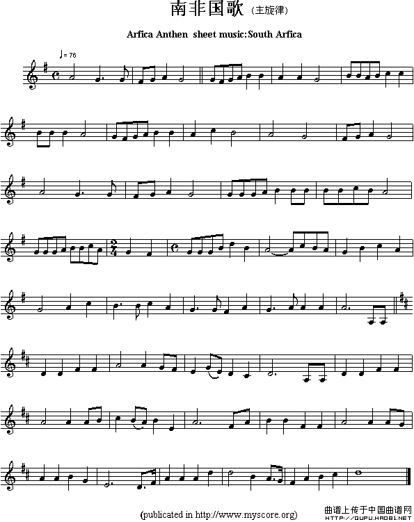 各国国歌主旋律:南非(Arfica Anthem sheet musec-So