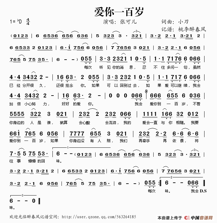 爱你一百岁简谱 桃李醉春风个人制谱园地 中国曲谱网