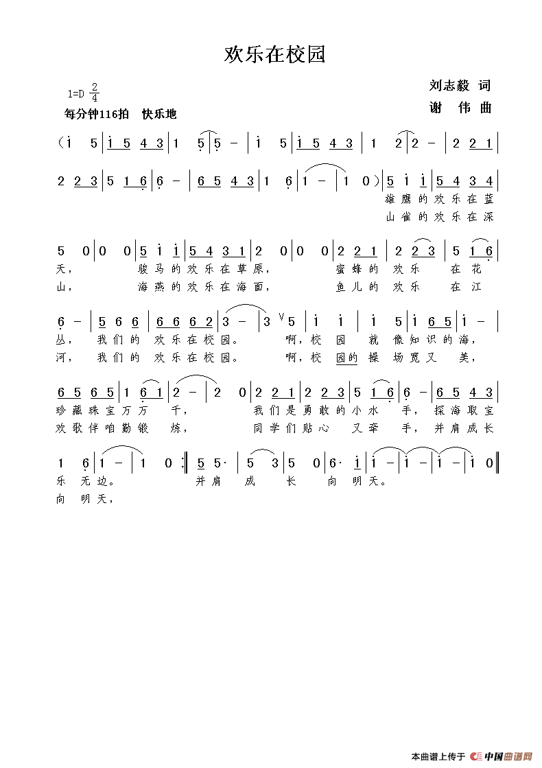 欢乐在校园简谱 刘志毅词 谢伟曲 谢伟原创曲谱专栏 中国曲谱网