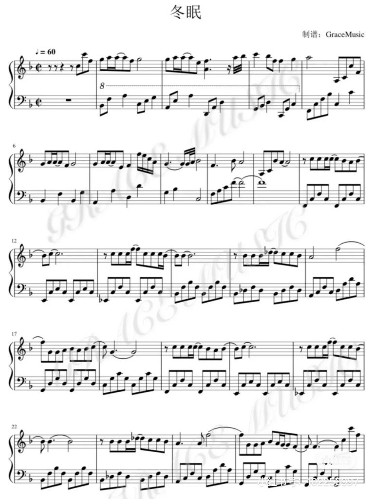 冬眠钢琴谱 F调独奏谱 司南 钢琴独奏视频 原版钢琴谱 乐谱 曲谱 五线谱 六线谱 高清免费下载