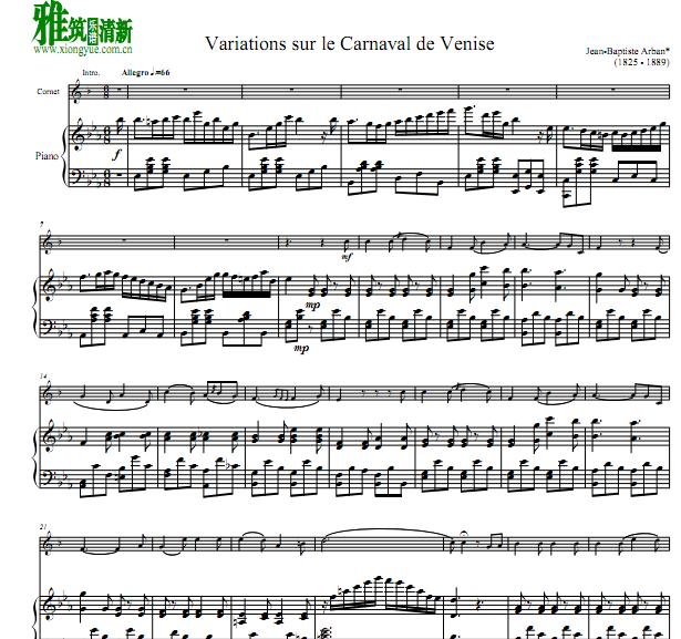 威尼斯狂欢节变奏曲小号钢琴伴奏谱