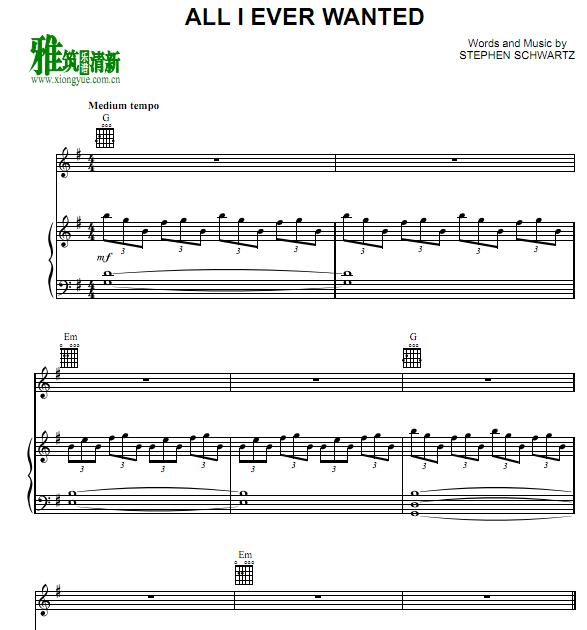 The Prince of Egypt OST All I Ever Wanted 正谱 歌谱
