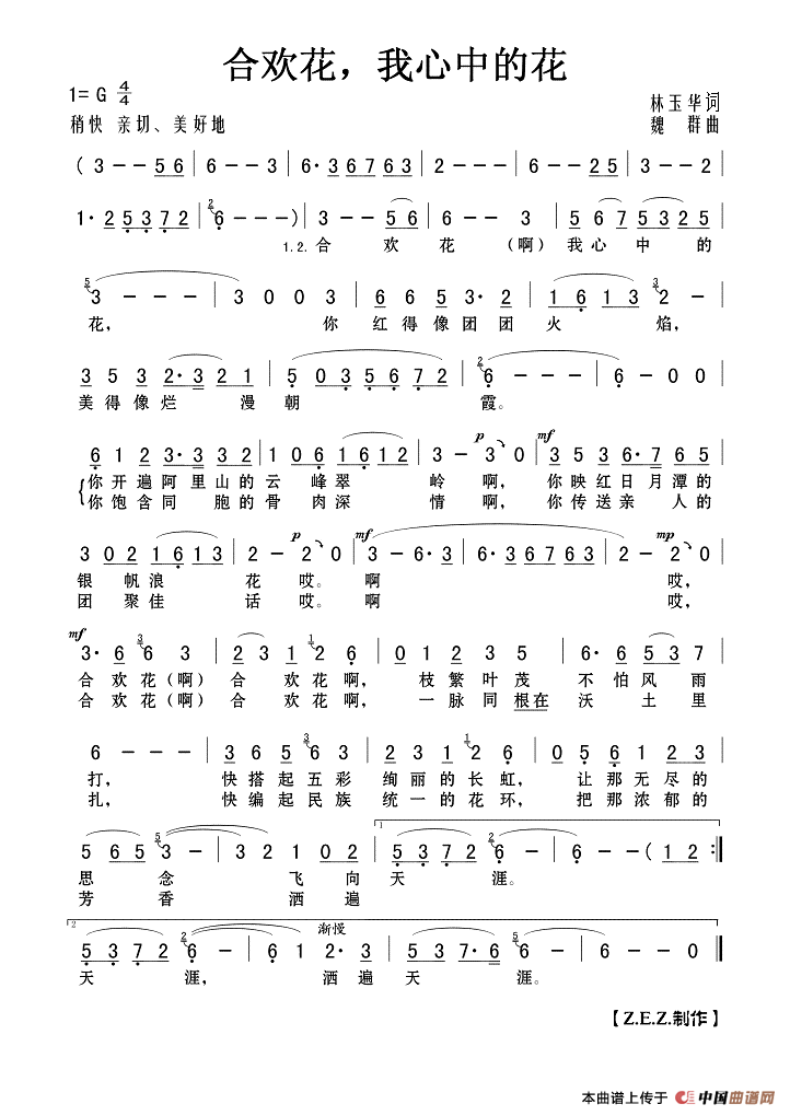 合欢花我心中的花简谱 sunzp个人制谱园地 中国曲谱网