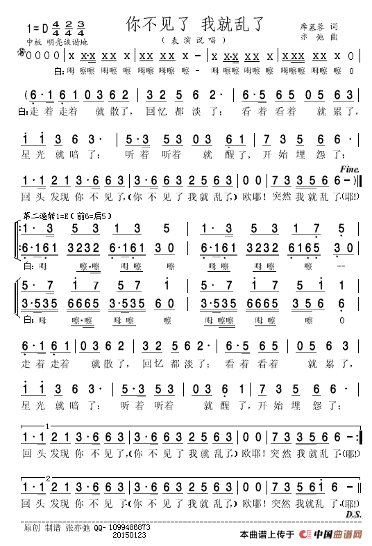 我的心太乱简谱 民歌曲谱 中国曲谱网