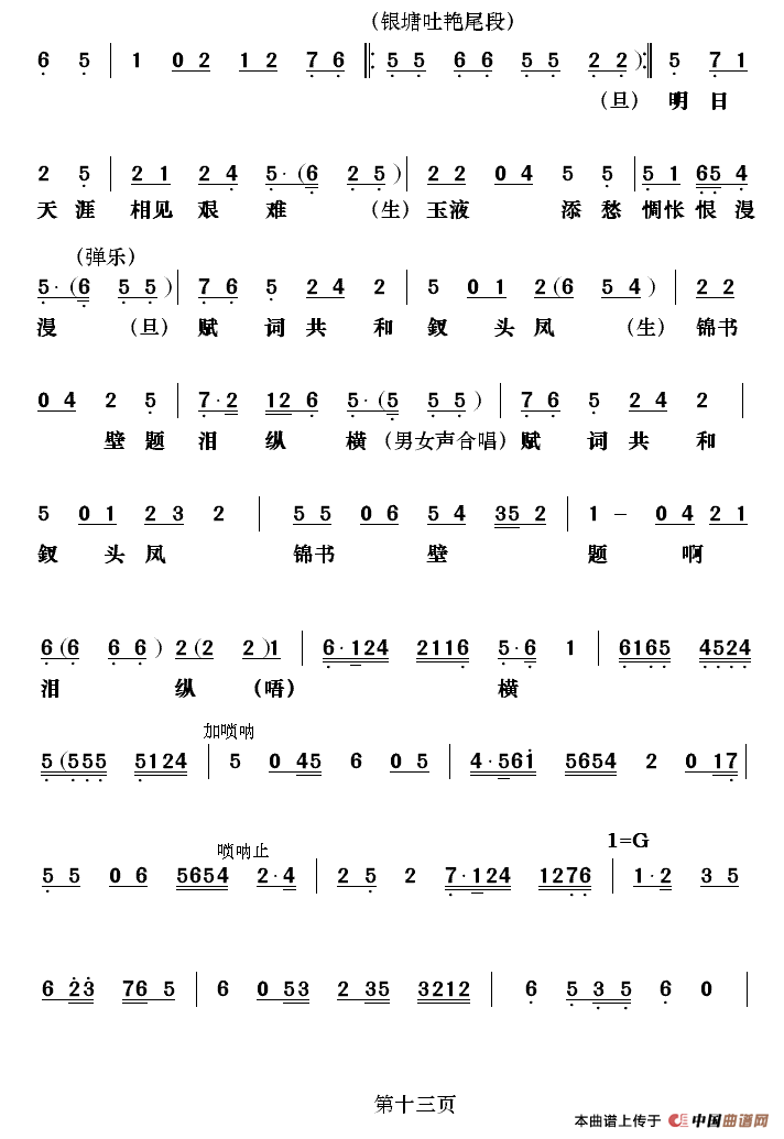 沈园遗恨戏曲谱 戏曲曲谱 中国曲谱网