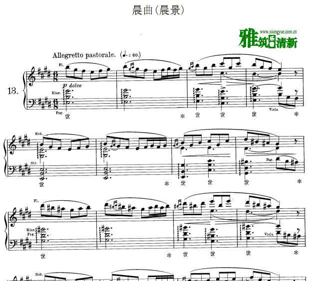 格里格 培尔 金特组曲 晨曲钢琴谱