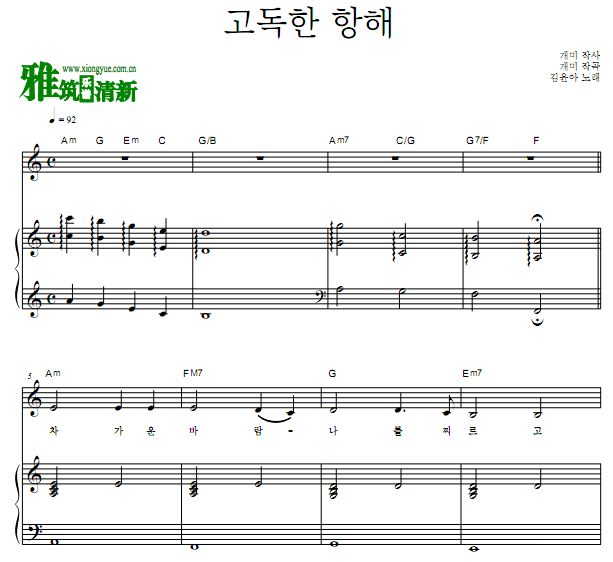 金润雅 夫妻的世界OST Part1 孤独的航海钢琴伴奏谱 歌谱