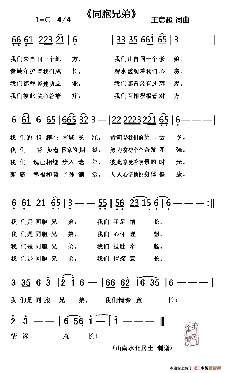 手足情简谱 sunzp个人制谱园地 中国曲谱网
