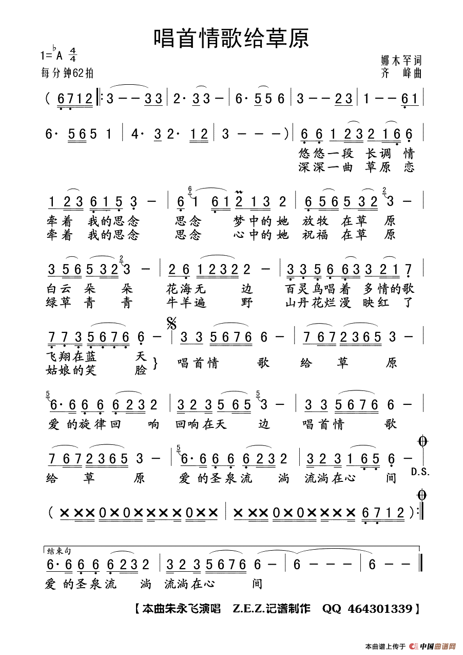 唱首情歌给草原简谱 Z.E.Z.个人制谱园地 中国曲谱网