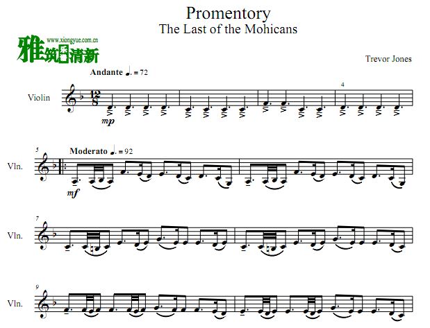 最后的莫希干人主题曲 Promentory中提琴谱
