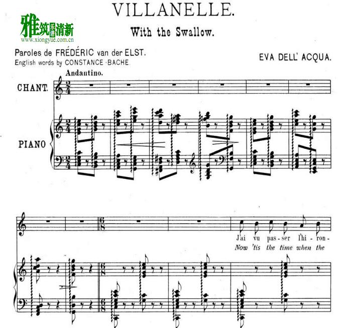Eva Dell Acqua 法国艺术歌曲 Villanelle 维拉涅拉歌舞 燕子 无花腔 歌谱 正谱