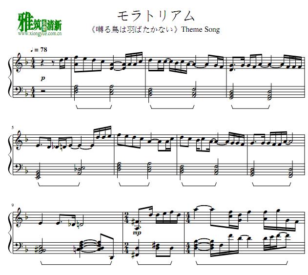 鸣鸟不飞 主题曲 モラトリアム钢琴谱