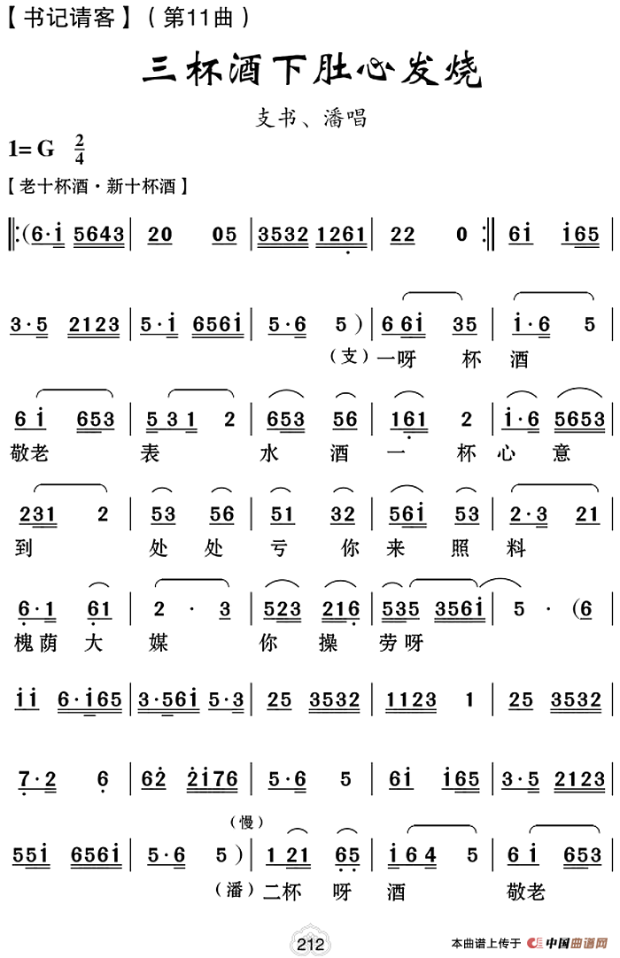 三杯酒下肚心发烧戏曲谱 书记请客 第11曲 戏曲曲谱 中国曲谱网