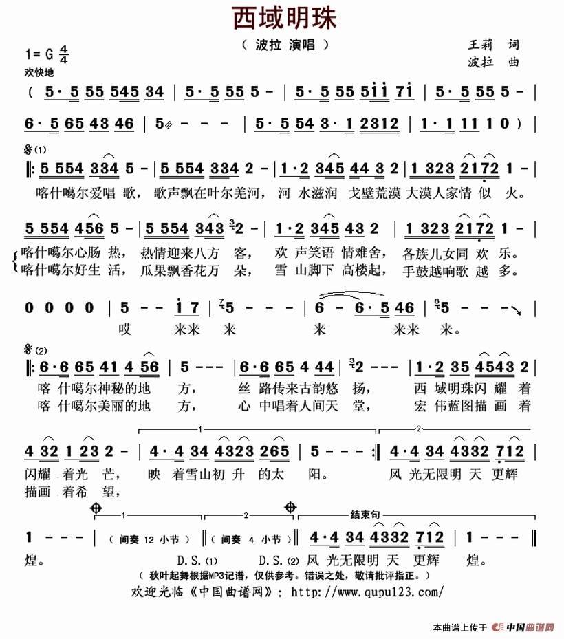 情断西域简谱 谱友园地 中国曲谱网