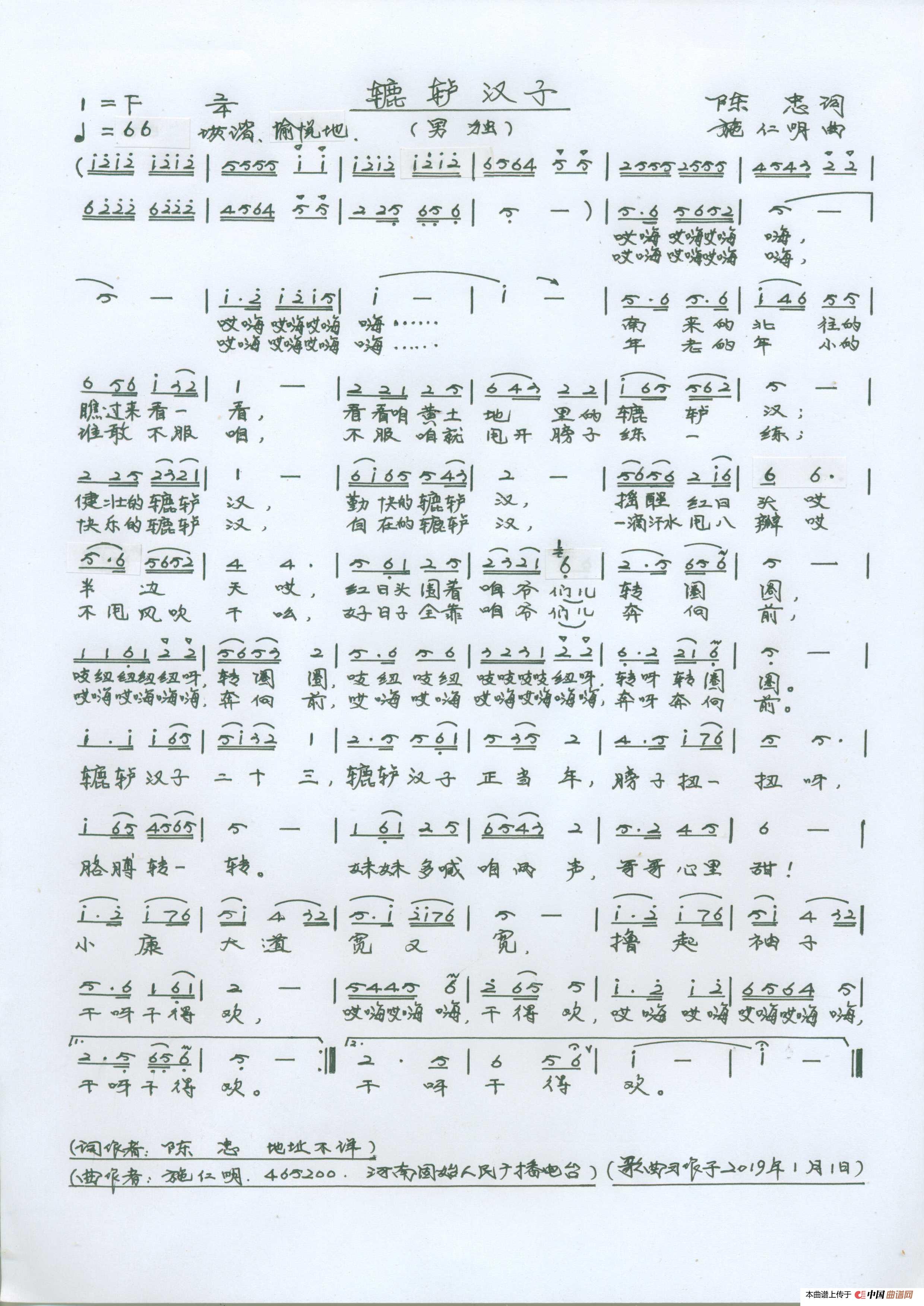 乡下汉子简谱 王海明词 张艺军曲 谱友园地 中国曲谱网