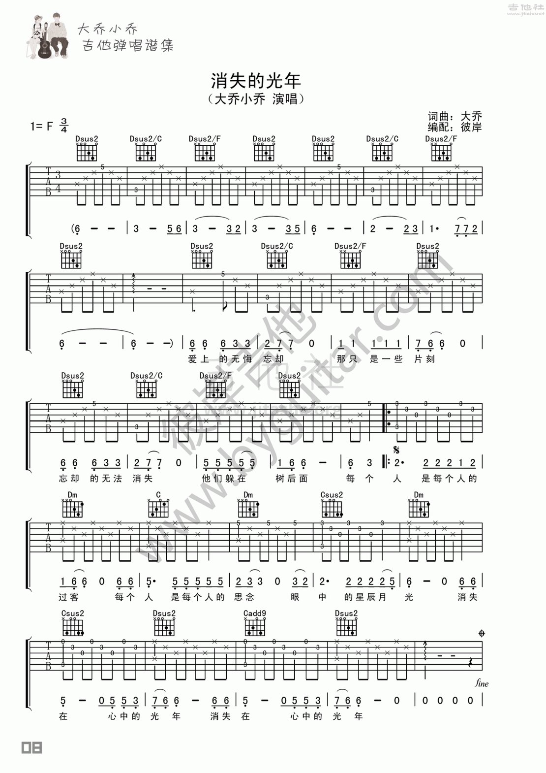 消失的光年吉他谱 图片谱,彼岸吉他,弹唱,民谣 大乔小乔 乔小刀 乔木楠