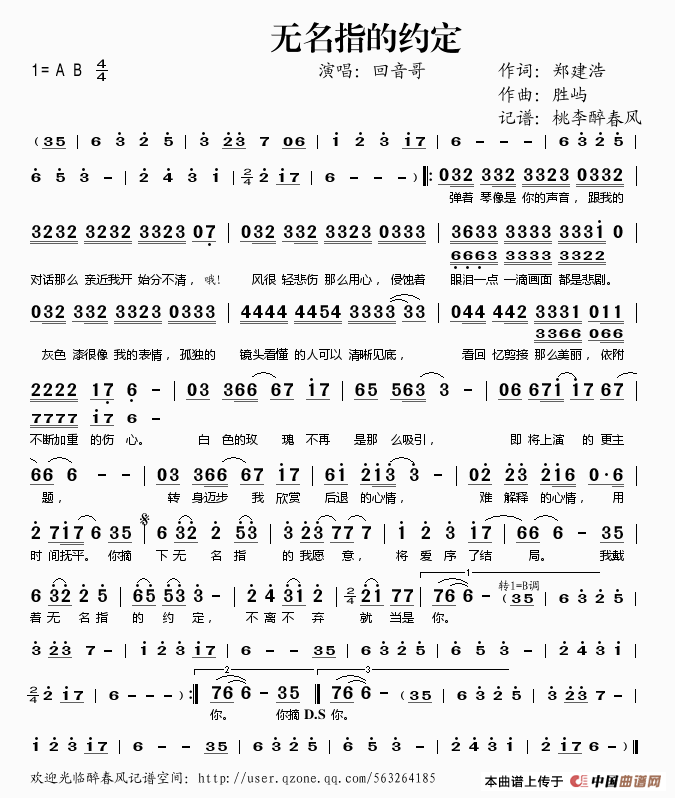 无名指的约定简谱 桃李醉春风个人制谱园地 中国曲谱网