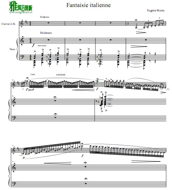尤金 博扎Eugene Bozza Fantaisie italienne单簧管钢琴谱
