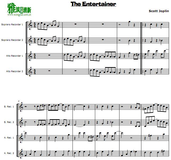 演艺人The Entertainer竖笛四重奏谱
