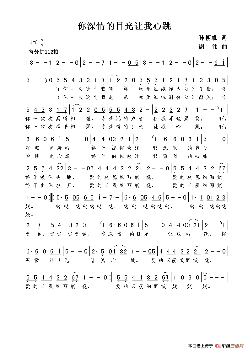 你深情的目光让我心跳 孙朝成词 谢伟曲