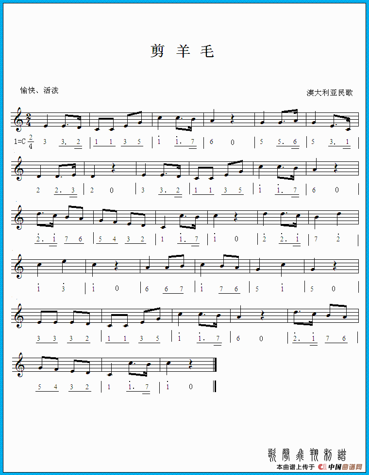 阳里山的姑娘电子琴谱 线简混排弹唱谱 器乐乐谱 中国曲谱网