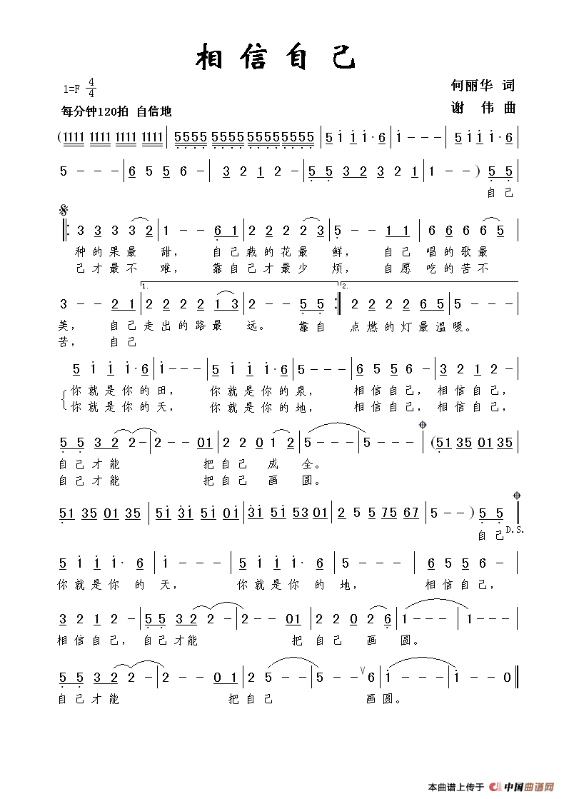 相信自己简谱 何丽华词 谢伟曲 谢伟原创曲谱专栏 中国曲谱网