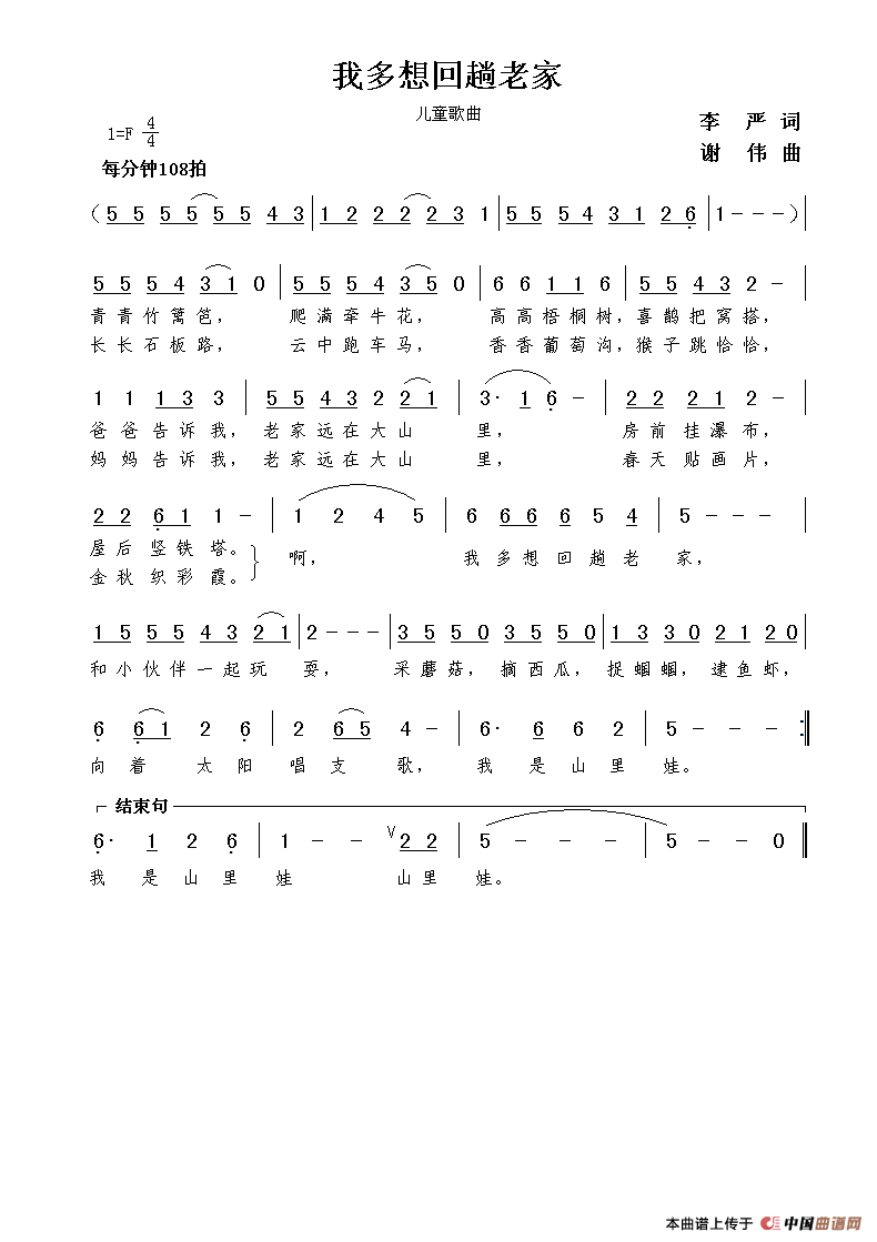 原创音乐曲谱 看见老家 崔增录词 柯德胜曲 Powered by Discuz
