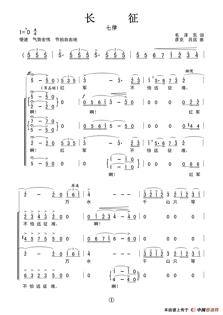 七律 长征简谱 毛泽东词 彦克 吕远曲 Z.E.Z.个人制谱园地 中国曲谱网