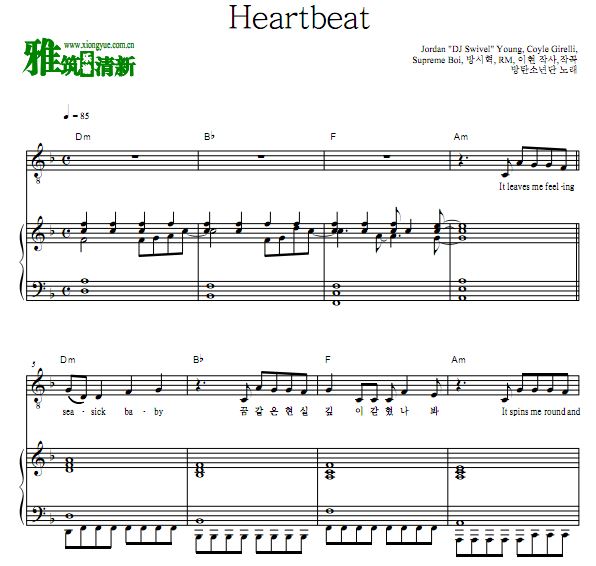 BTS Heartbeat 韩文原版歌谱 钢琴伴奏谱