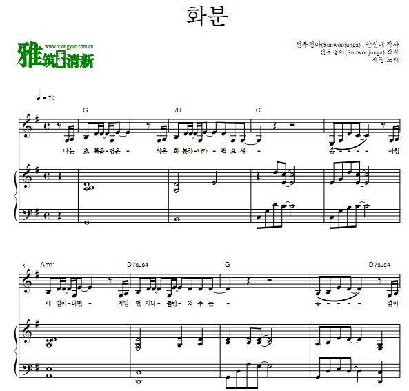 金世正 花盆 Plant 钢琴伴奏谱 韩文歌谱