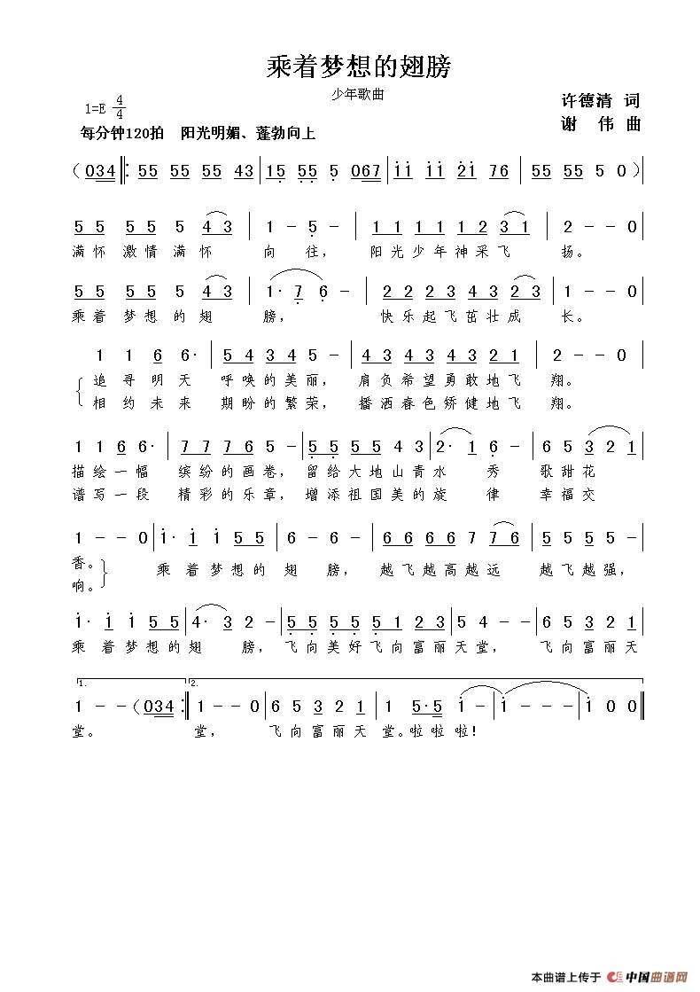 原创音乐曲谱 2013年第55号 张开梦想的翅膀 何丽华词 朱华胜曲 Powered by Discuz