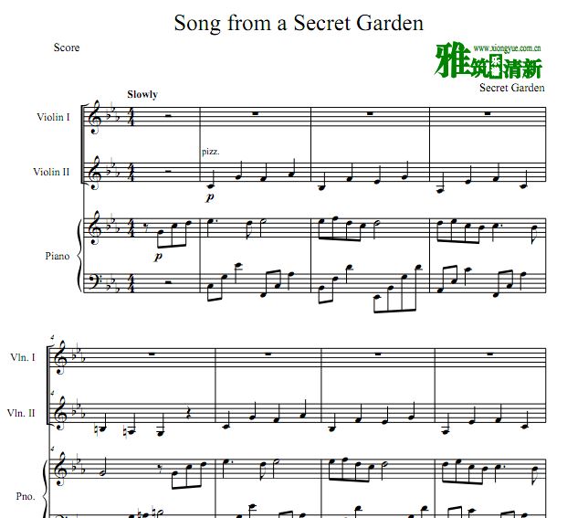 神秘园之歌小提琴大提琴钢琴三重奏谱