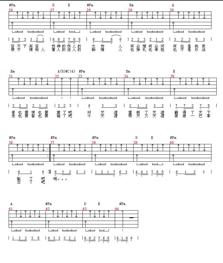 对面的女孩看过来 任贤齐 四合一吉他谱 木棉道琴行