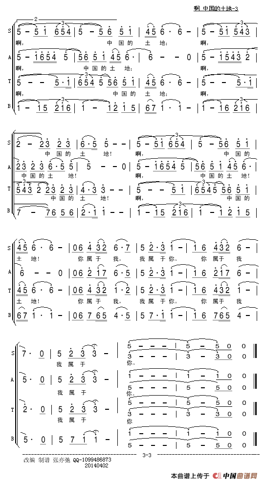 啊中国的土地G调伴奏佟铁鑫歌谱五线谱