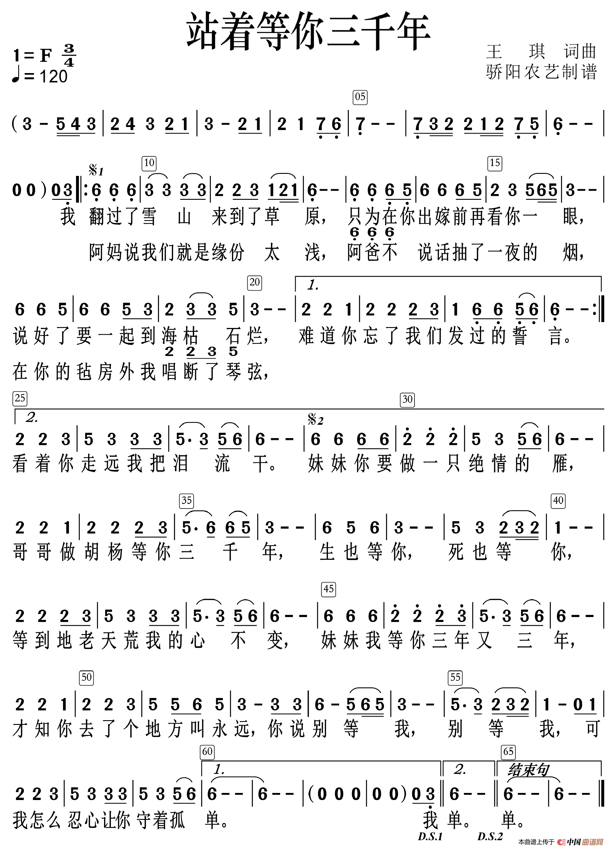等待春天简谱 鲁新华原创曲谱专栏 中国曲谱网