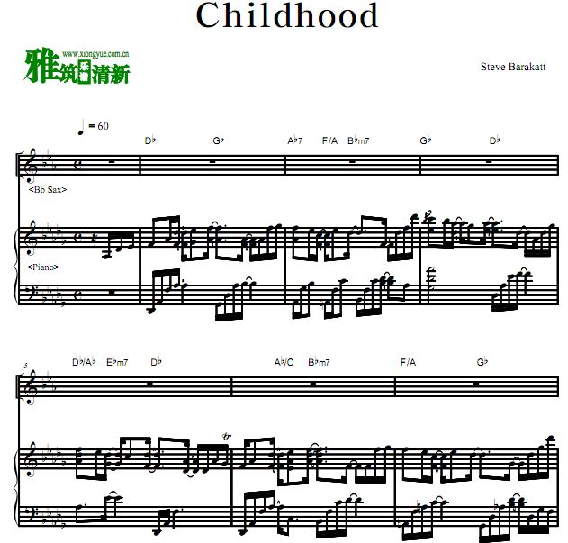 史蒂夫 贝瑞卡Steve Barakatt Childhood降B萨克斯钢琴谱