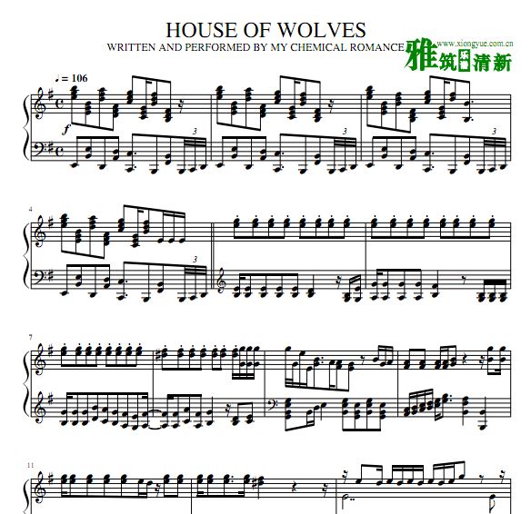 我的化学浪漫乐队 HOUSE OF WOLVES钢琴谱