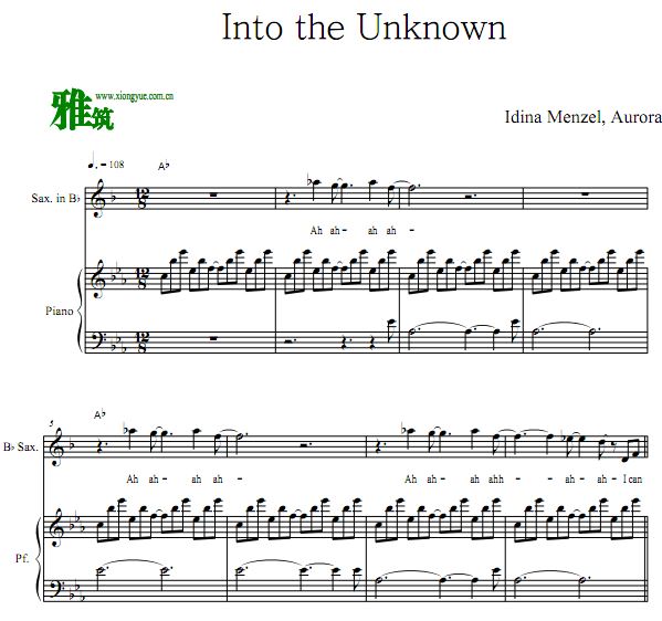 冰雪奇缘2 Into the Unknown降B萨克斯钢琴伴奏谱