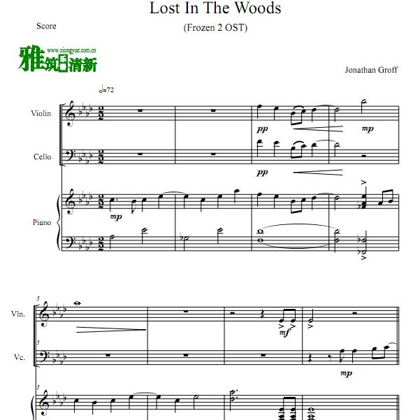 冰雪奇缘2 Lost In The Woods钢琴三重奏谱 小提大提钢琴合奏谱