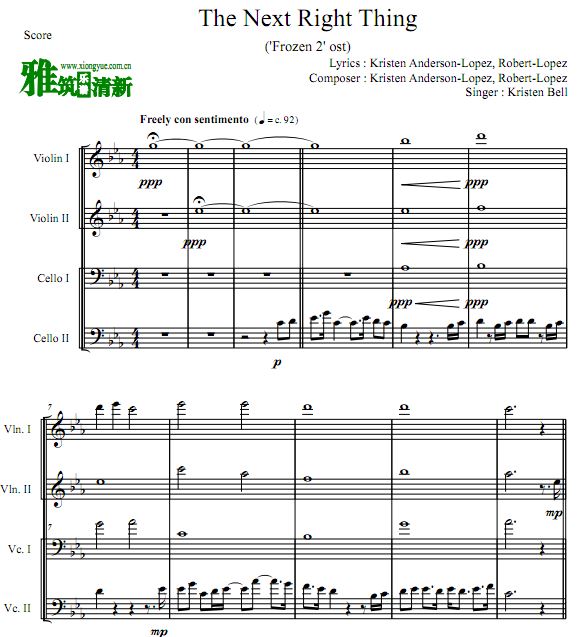 冰雪奇缘2 The Next Right Thing双小提双大提合奏谱