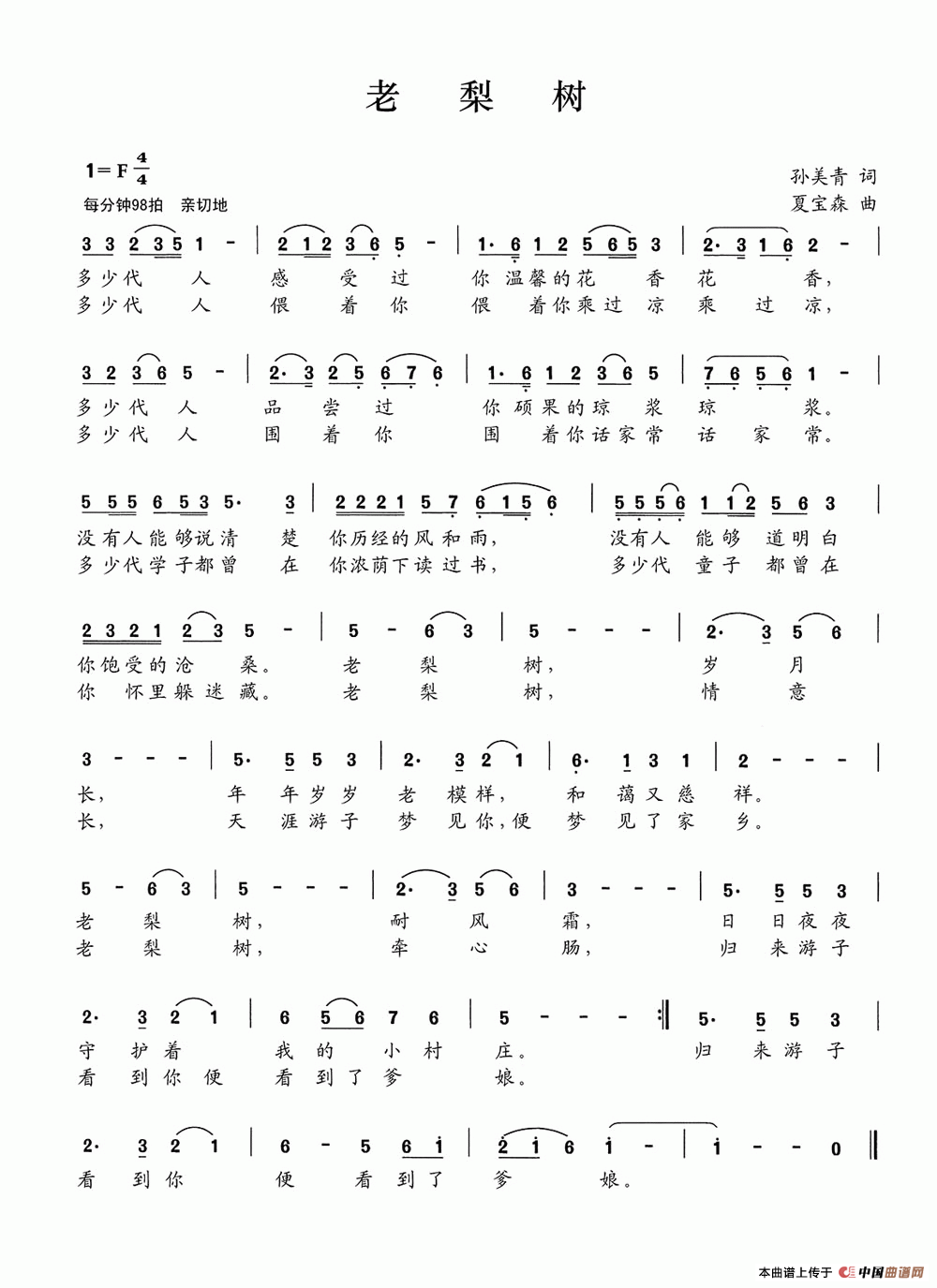 老梨树 孙美青词 夏宝森曲