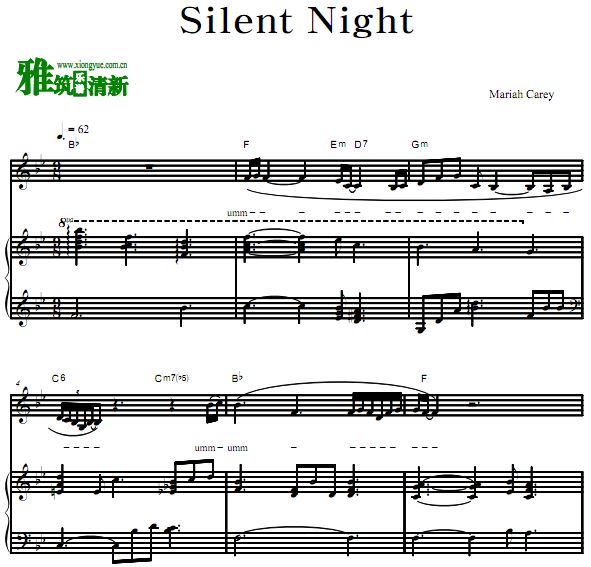 Mariah Carey Silent Night 歌谱 钢琴伴奏谱 正谱