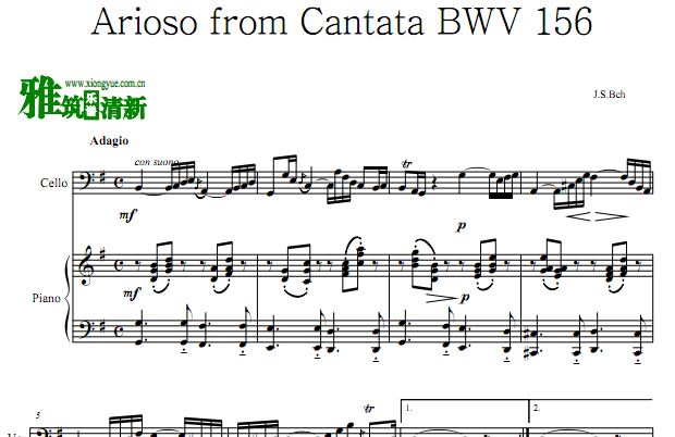 巴赫 小咏叹调大提琴钢琴伴奏谱 低音谱