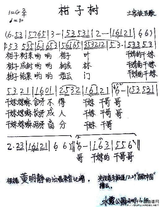 柑子树简谱 土家族民歌 民歌曲谱 中国曲谱网