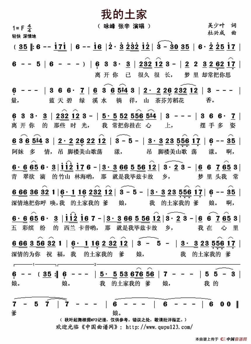 梦回土家简谱 甘茂华词 张渠曲 爱乐个人制谱园地 中国曲谱网