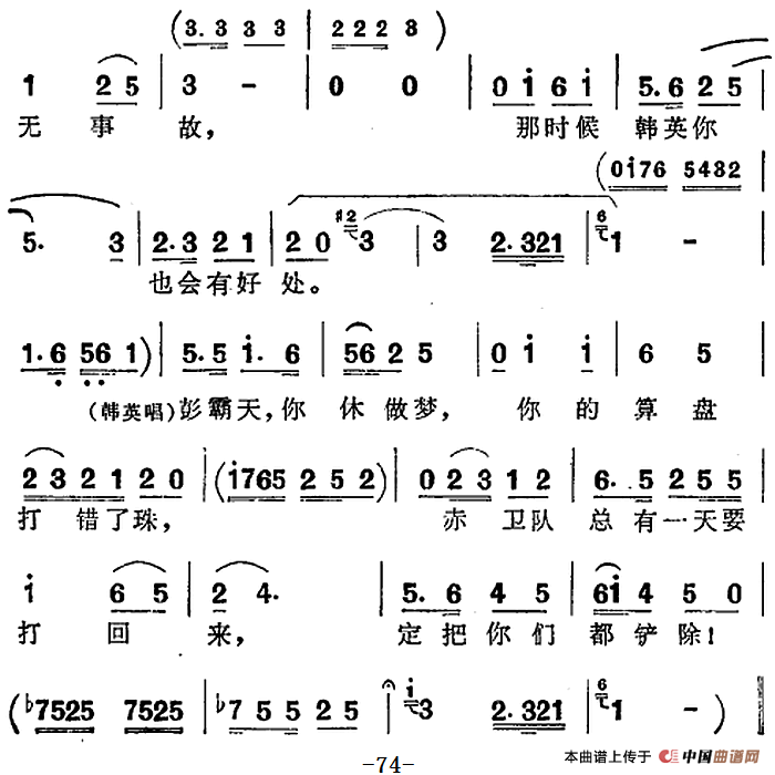 歌剧 洪湖赤卫队 第四场第二曲 湖水清,沟水污戏曲谱 戏曲曲谱 中国曲谱网