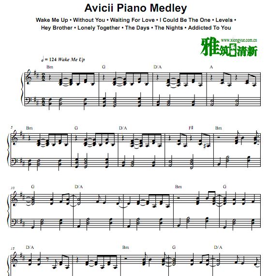 艾维奇Avicii经典歌曲串烧钢琴谱