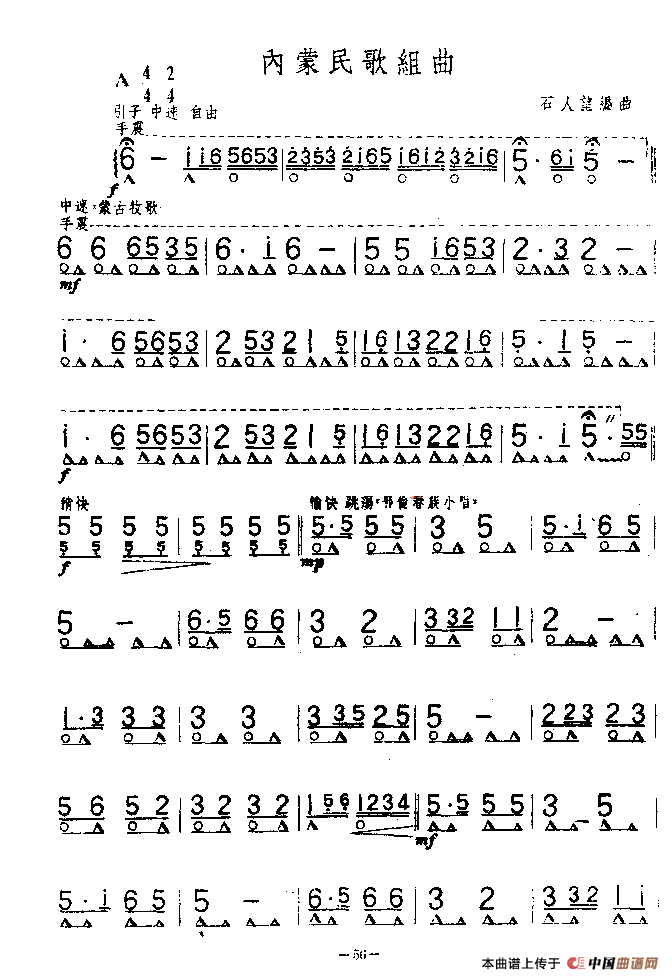 内蒙民歌组曲口琴谱 器乐乐谱 中国曲谱网